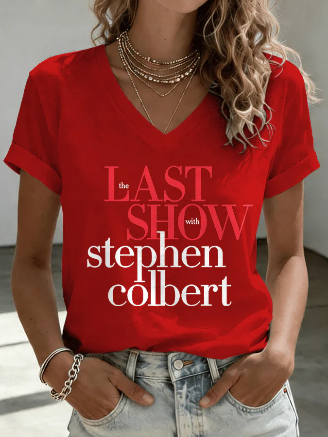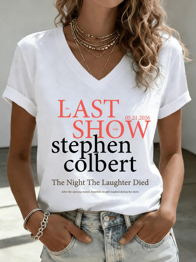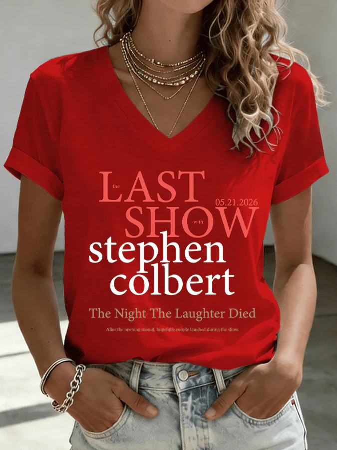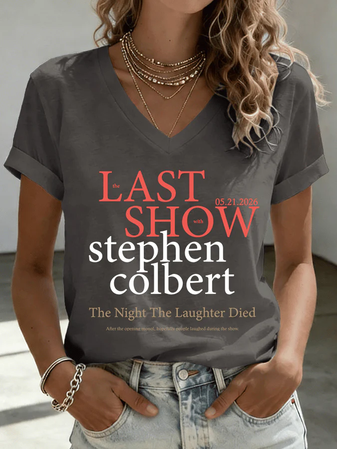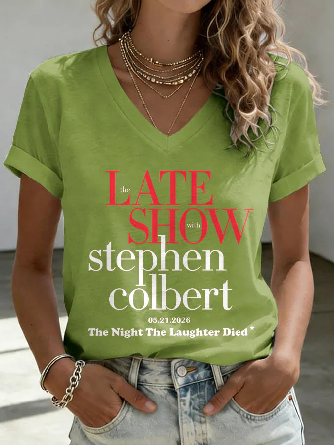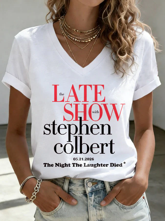 V-Neck Retro Late Show 05.21.2026 The Night The Laughter Died Print T-Shirt