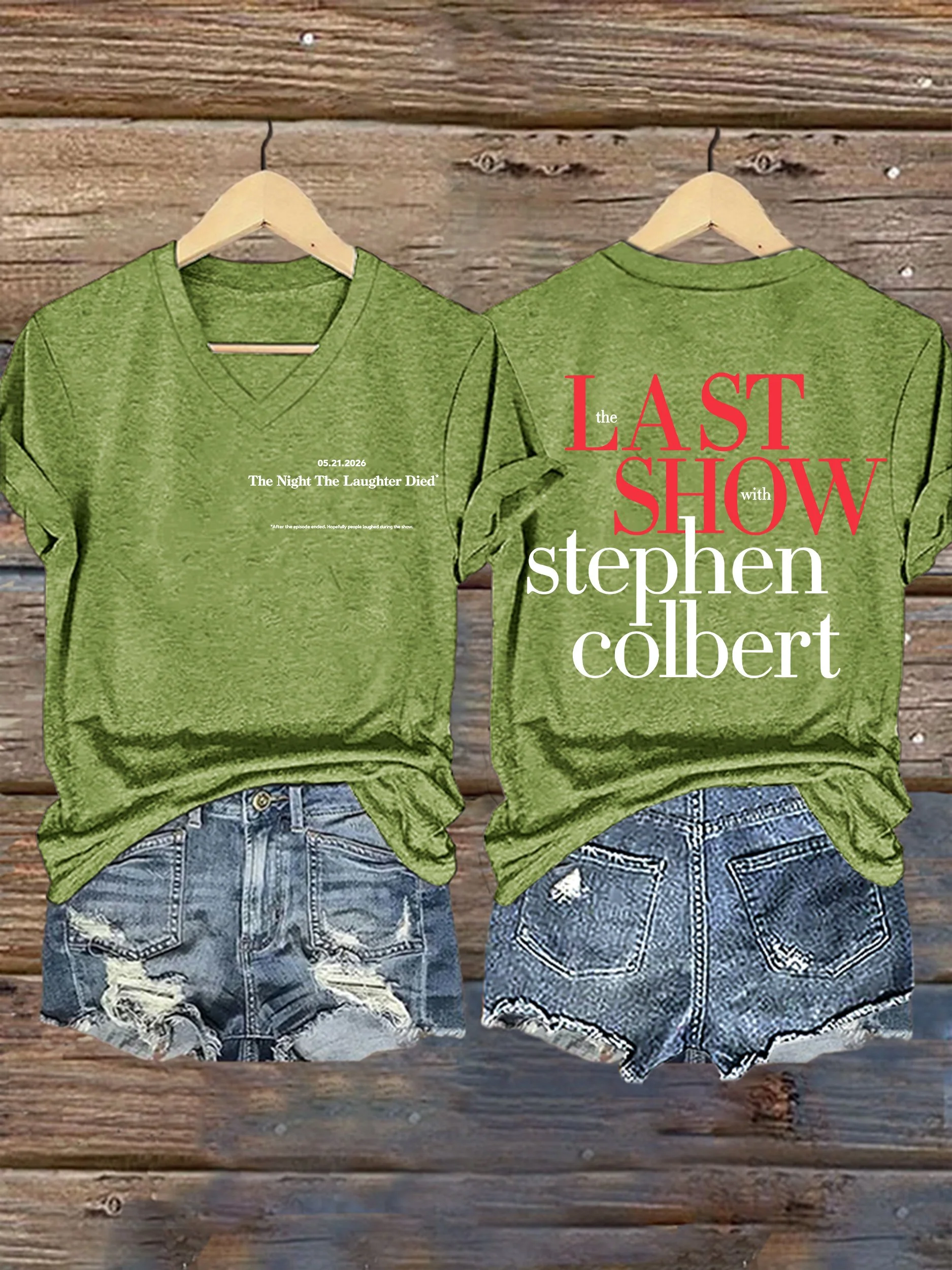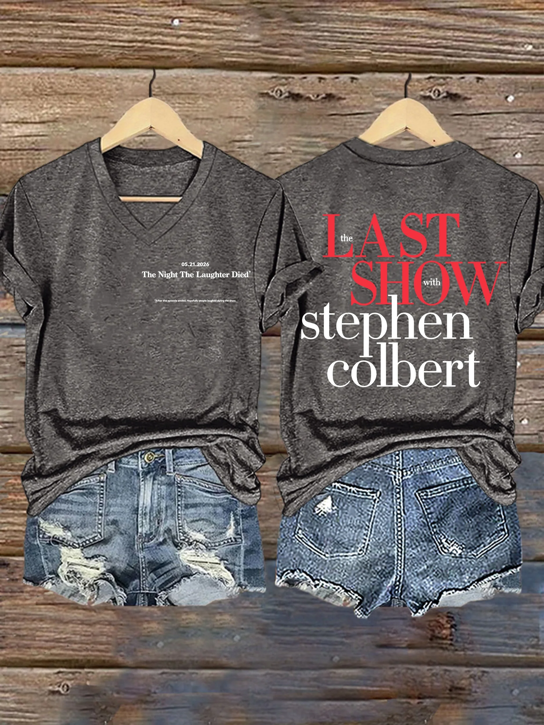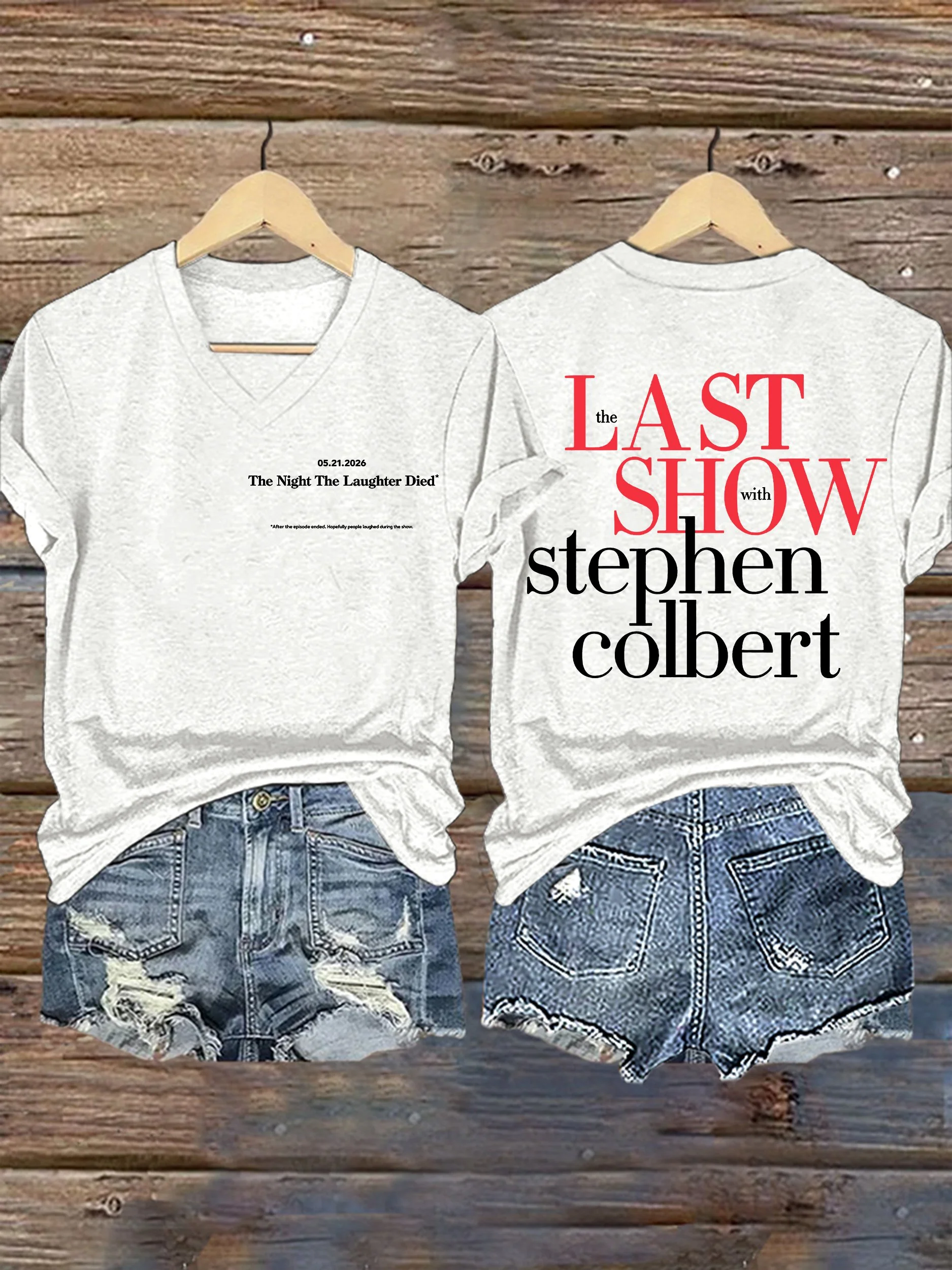 V-Neck Retro Late Show 05.21.2026 The Night The Laughter Died Print T-Shirt