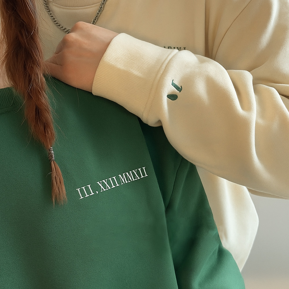 Cutest Custom Embroidered Roman Numeral Date Couple's Sweatshirt