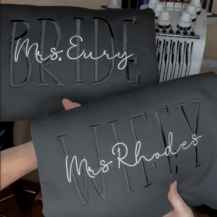 Celebrate the joy of being a "Wifey" or "Bride"  with our Embroidered Wifey Sweatshirt.